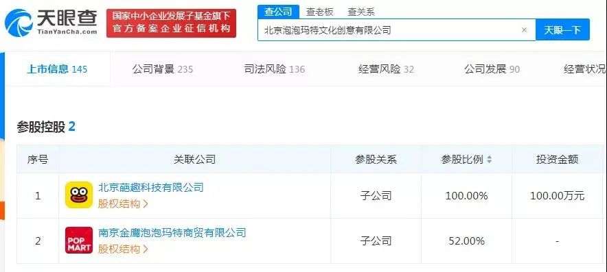 另据天眼查相关资料显示,除了自己的销售体系,泡泡玛特还为玩家打造了一个二手交易平台——葩趣。除了社交,消费者可以在这个平台对娃娃进行交换、售卖、改装。在二手市场,59元的Dimoo“鹿影”售价高达8500元。无论是相互攀比还是为了搏一搏单车变摩托,葩趣的氛围都能激发消费者的复购欲望。