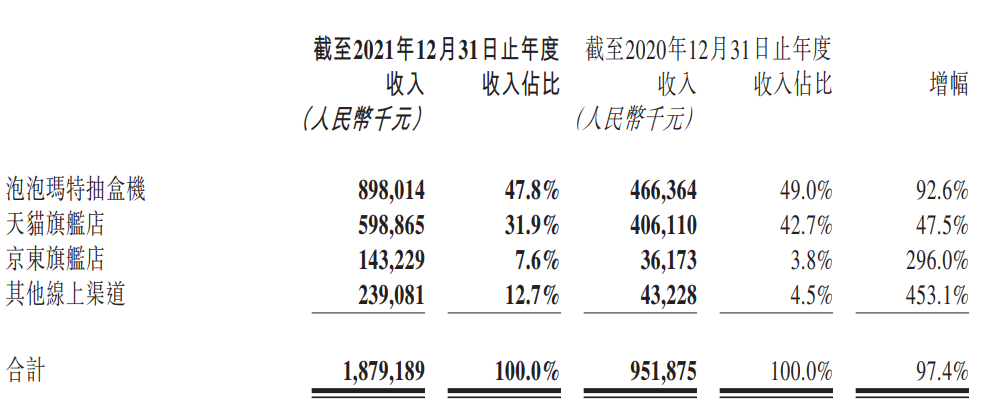 另一方面,线上渠道在2021年的收入占比已提升至41.8%,增速高达97.58%。而这其中占比最大的,就是“泡泡玛特抽盒机” 。